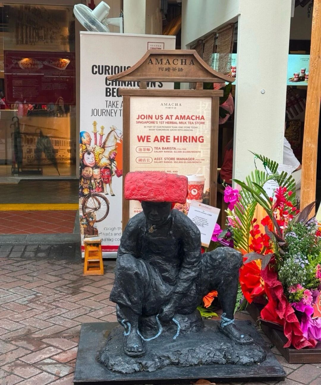 若在新加坡街头驻足,你会碰见这么一座雕像——头戴暗红色方巾的女子,肩挑扁担,眉眼低落却脊梁径直。