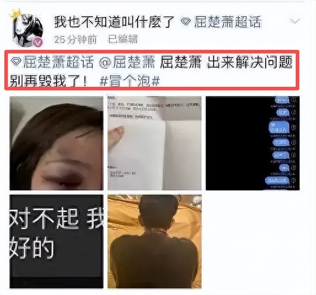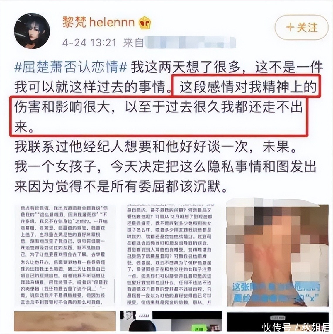 同庚,自称是屈楚萧前女友的黎梵晒出伤疤照和聊天记载。