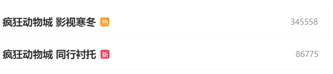 这样来看,《豪恣动物城2》上的“豪恣动物城 影视隆冬”和“豪恣动物城 同业映衬”这两个热搜,确凿是歹毒又恶心。