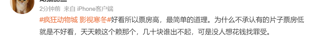 还有,叫嚣着“好片子是不会影视隆冬的”的东谈主,是不是一年只看《豪恣动物城2》这一部电影?