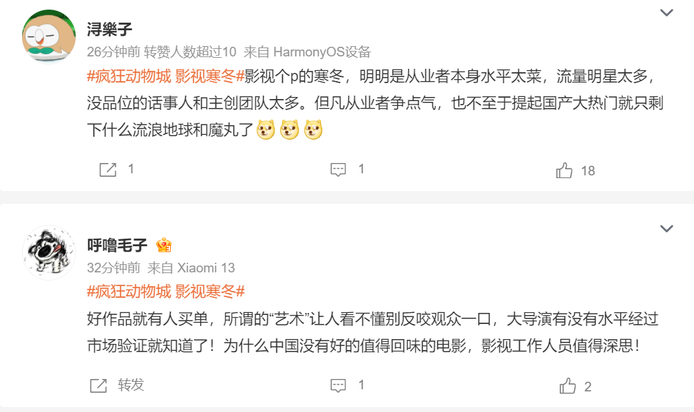 竟然如斯。点开热搜话题,实践是转发和挑剔不算太多的营销号运转带节律,饱读励《豪恣动物城2》的同期斥责国产电影,抛出的论调是——