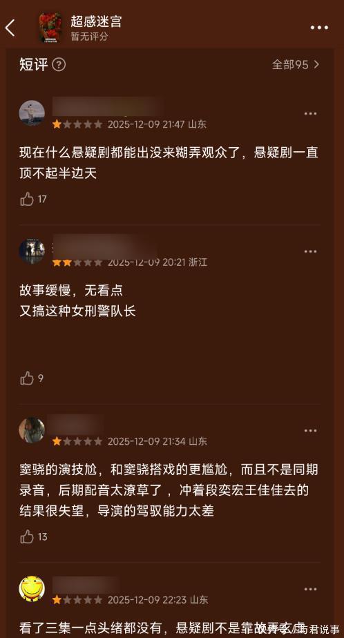 12月9号,由段奕宏、窦骁、王佳佳主演的悬疑剧《超感迷宫》上线了。 行为一部鹅厂出品的悬疑剧,还有影帝段奕宏主演,但这部剧很稀有—— 竟然莫得收录到“迷雾戏院”中,反而是像野孩子一样,随不端便就上线了,甚而还不是鹅厂独家放映。 连自家东说念主齐看不上,从这就看出蹊跷了。