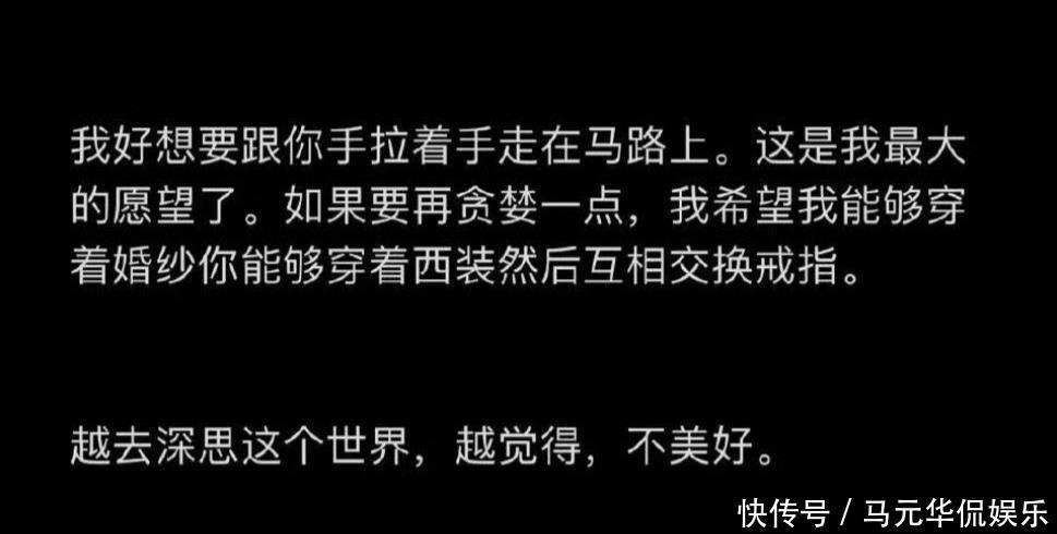 此外,她还深情写谈:“我好念念要跟你手拉入部下手走在马路上。如若要再研究极少,我但愿我能够穿戴婚纱你能够穿戴西装然后相互交换抑止。”
