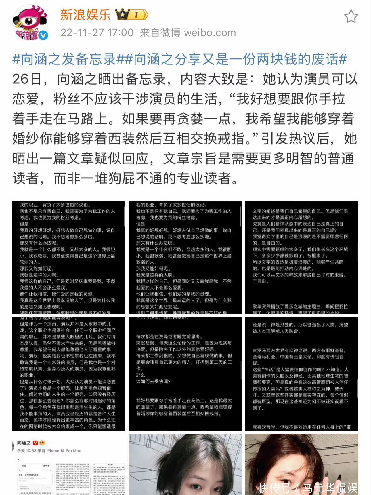 翻看向涵之2022年发布的备忘录,其时她八成就已与周奇在全部。女方以为演员不错恋爱,粉丝不应插手演员生活。
