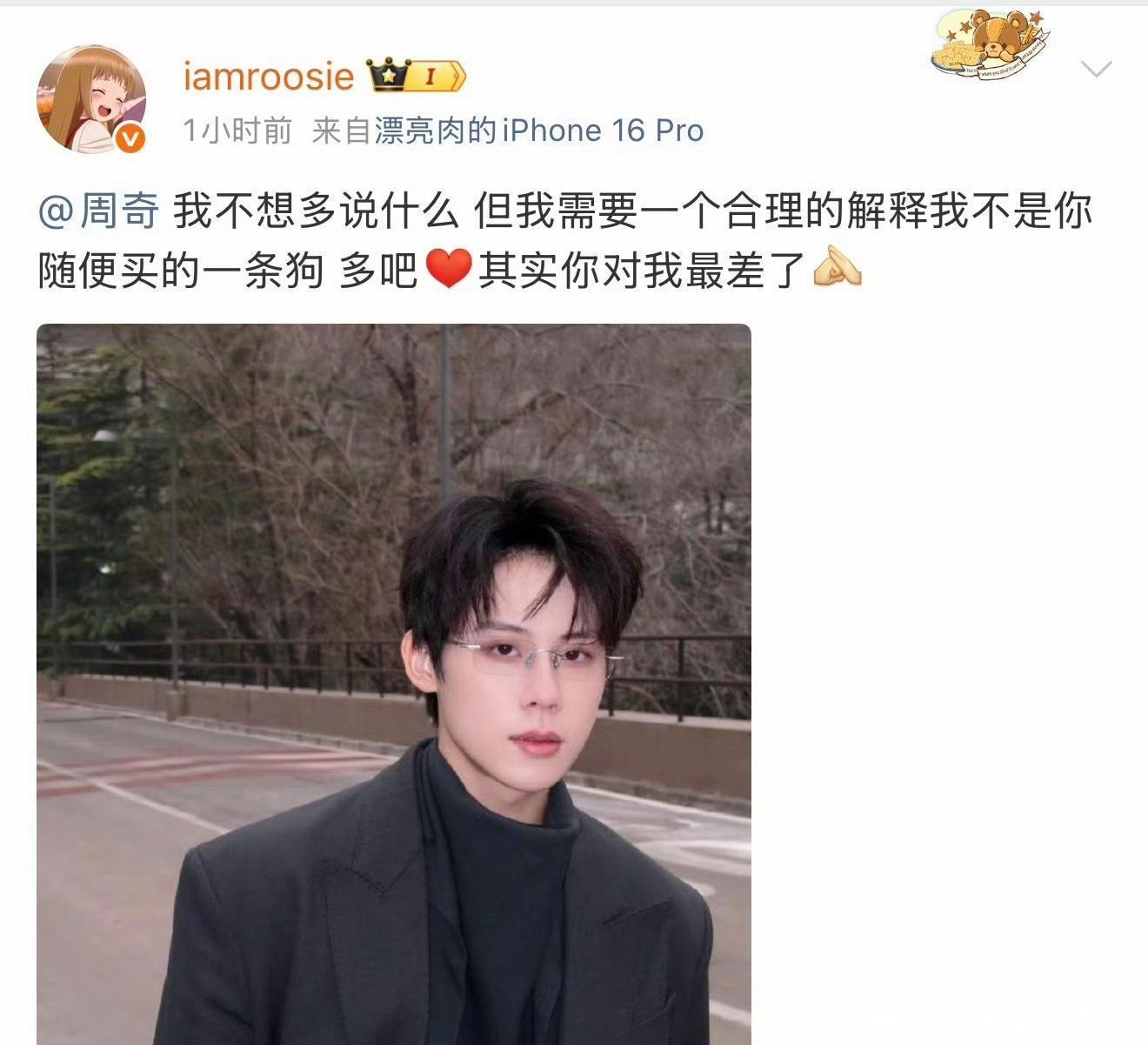 此外,她还晒出聊天纪录、希尔顿欢一又旅馆定位及疑似浩繁相片,还控诉周奇“对我方派头最差”,直言“我不是你缓慢买的一条狗” 。