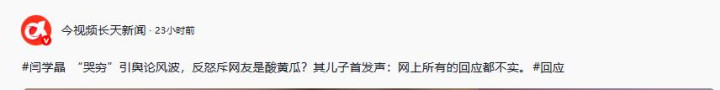 【1】2026年1月7日发布 今视频长天新闻《#闫学晶 “哭穷”引公论风云,反叱咤网友是酸黄瓜?其女儿首发声:网上悉数的回复齐演叨。#回复》