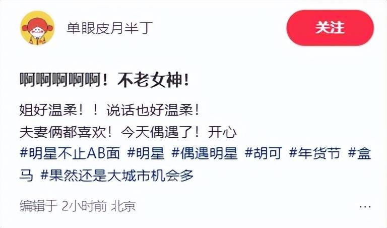 刚出席完高规格海外经贸理睬会的胡可,竟在街头被路东说念主偶遇。