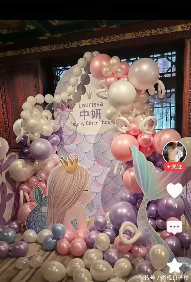 该餐厅很是为霍中妍嘱咐了寿辰派对,摆放着许多不同形态的气球还有好意思东说念主鱼,应该是小姑娘心爱的画面,很有童趣。中间有一个牌子上写着:中妍happy 8th birthday。