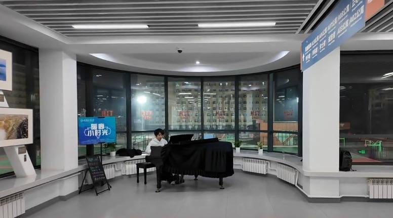 “暖廊”嘱托得温馨好意思不雅,有学生在仓猝赶路,也有学生容身念念考,还有的在参不雅展览、不雅看羽毛球比赛、靠在窗边自习。致使在转角处,还有不错免费弹奏的钢琴。