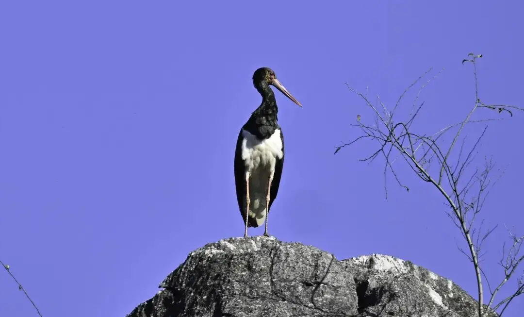 1月19日,影相喜爱者刘杰在丘北普者黑当然保护区进行拍摄时,初度拍摄到国度一级要点保护野纯真物黑鹳的明晰影像。